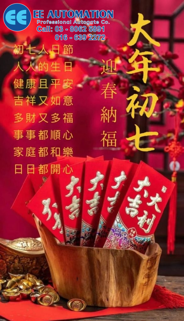 初七 · 人日快乐 · 开工大吉 今天是农历正月初七,人日,是人人生日的吉祥日子,也象征着新的起点与新的希望。在这充满喜气与正能量的日子里,EE Automation & Technology Sdn Bhd 正式开工啦! 作为 Tronica Autogate 的主要供应商,我们专注于提供本地注册商标的自动门系统。Tronica Autogate 以 稳定耐用、重型设计(Heavy Duty)、可靠性能强 而著称,广泛适用于住宅与商业用途,深受市场认可与信赖。 新的一年,我们将继续坚持:✔ 稳定品质✔ 专业安装✔ 可靠售后服务✔ 高效自动化解决方案 衷心感谢所有客户与合作伙伴一直以来的支持与信任。🌟 祝愿大家:* 人日快乐,福气满满* 开工大吉,生意兴隆* 工程顺利,业绩长虹* 平安健康,阖家幸福 2026年,让我们继续携手前行,共创更辉煌的未来!